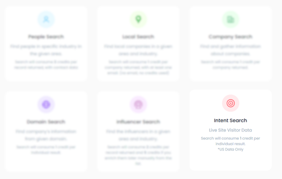 Multiple search types (People, Local, Company, Domain, Influencer, and Intent-based Search)